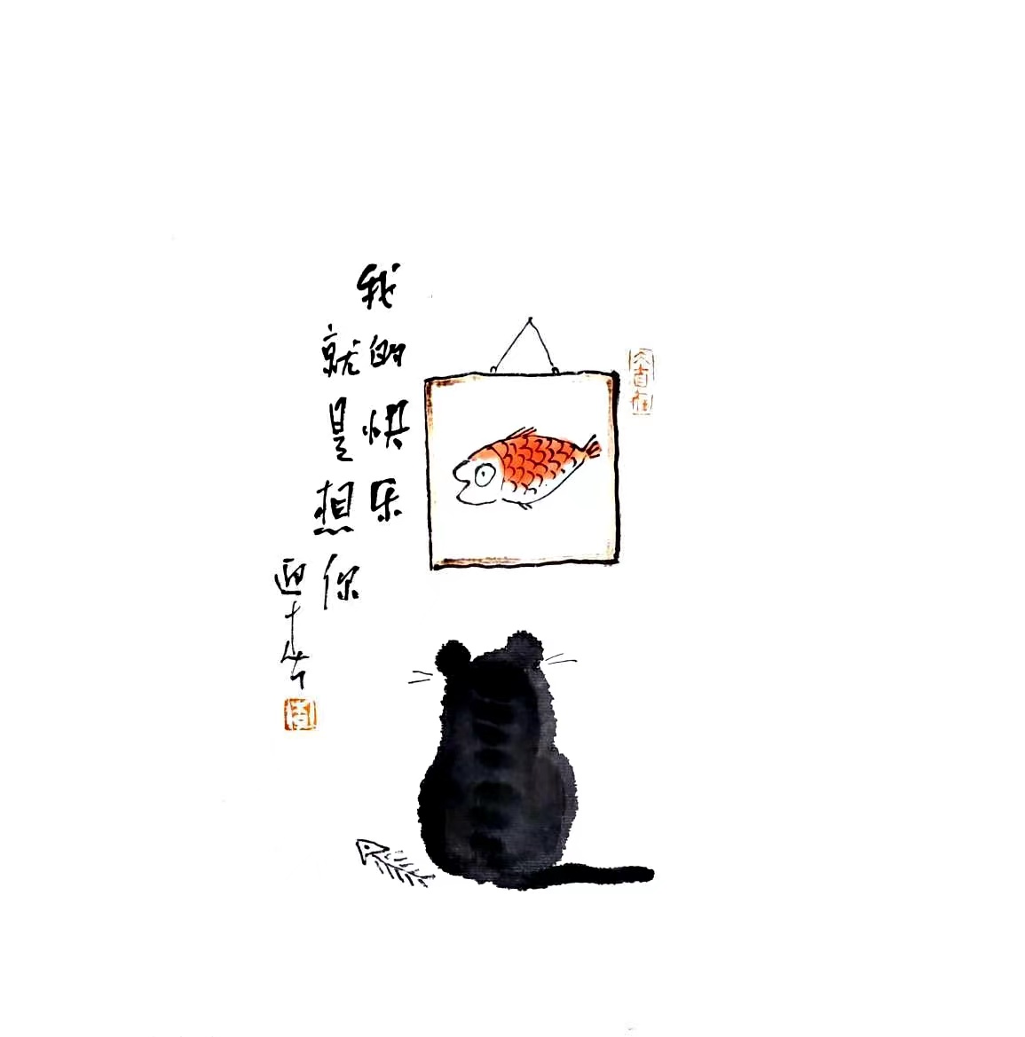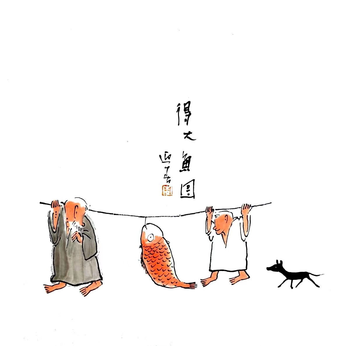 禅意水墨画 《得大鱼图》