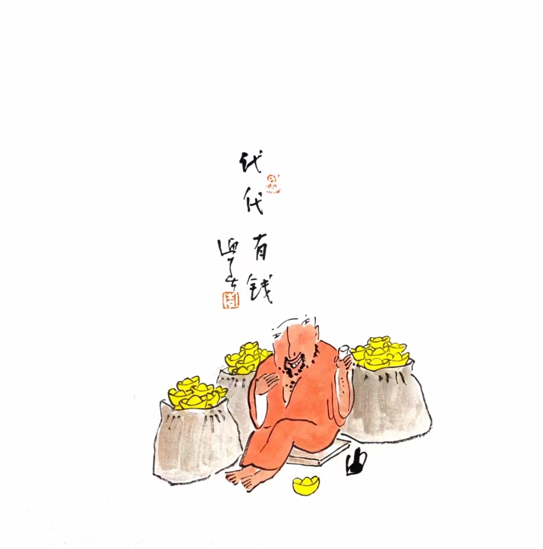 禅意水墨画 《代代有钱》