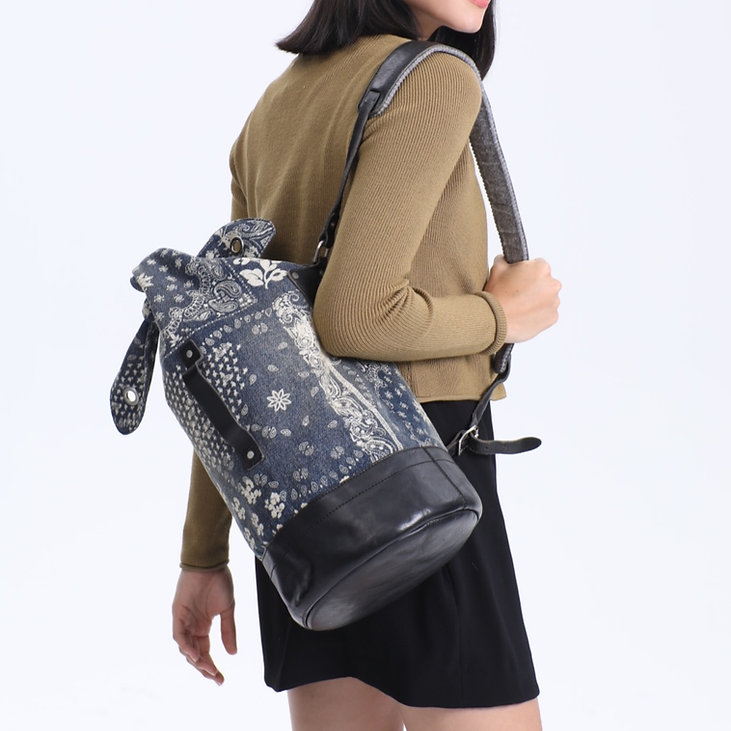 牛仔拔印水桶包